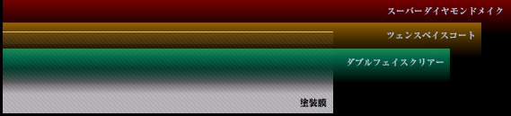 スーパーダイヤモンドメイクを塗布することで、3層からなるスーパーマルチコントロールを構造し、刀のようなにしなやかで強靭な自然劣化に強い被膜を構築します。